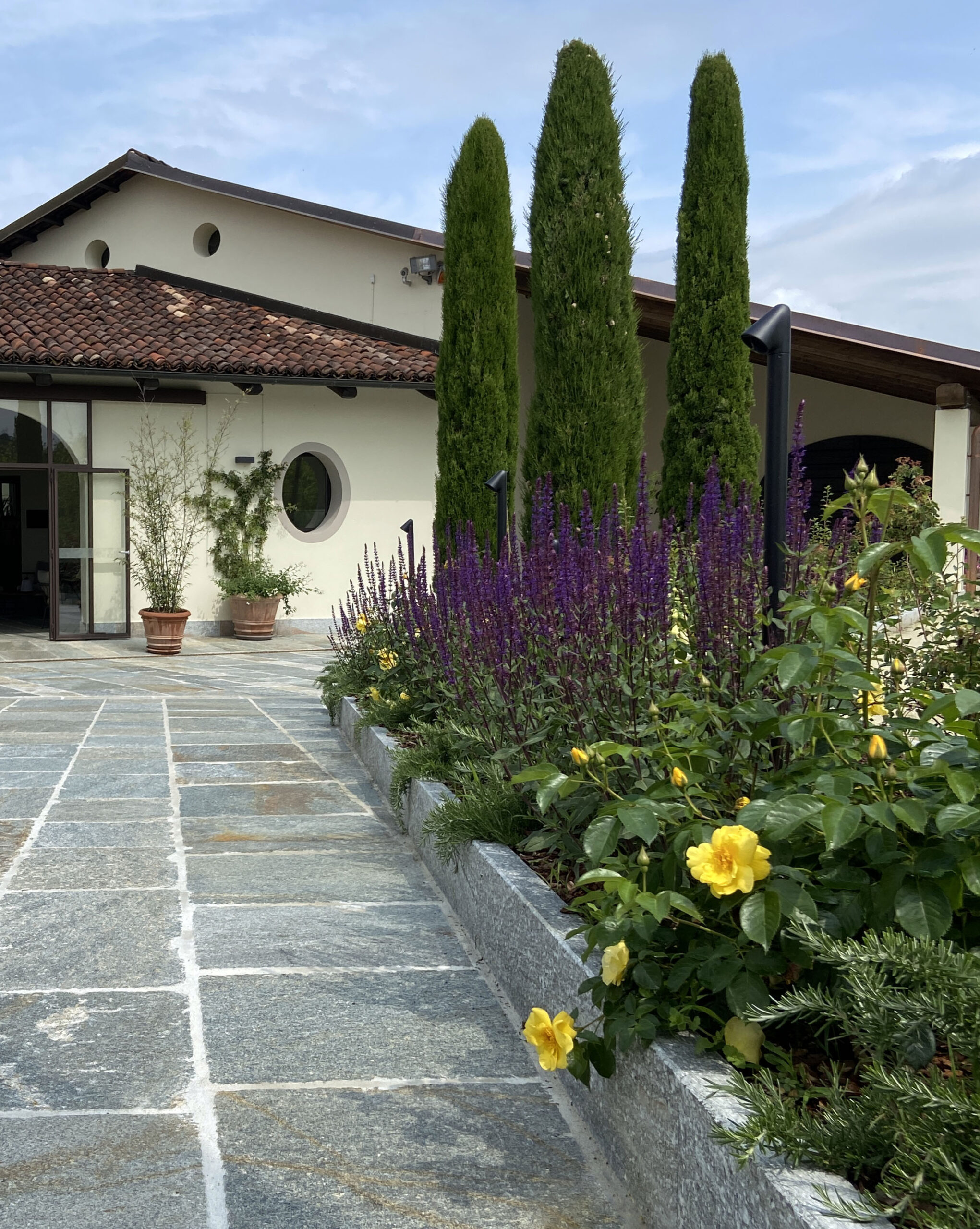 Grande attenzione è stata dedicata al progetto del giardino, studiato per garantire un’armonia visiva e naturale con il territorio. La scelta delle essenze è stata fondamentale: piante autoctone e aromatiche sono state selezionate con cura per rispettare la biodiversità locale e garantire un’esperienza sensoriale che cambia con le stagioni.
